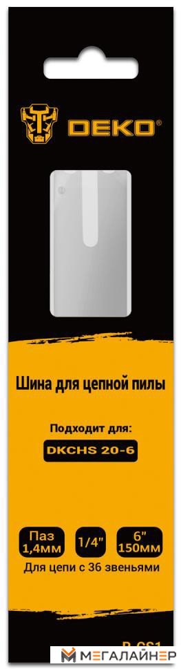 | Информация | - Шина для цепной пилы DEKO R-CS1, 6", 1.4 мм, 36 звеньев подходит для модели DKCHS 20-6. |