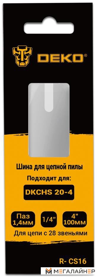 | Информация | - Шина для цепной пилы DEKO R-CS16, 4", 1.4 мм, 28 звеньев подходит для модели DKCHS 20-4. |
