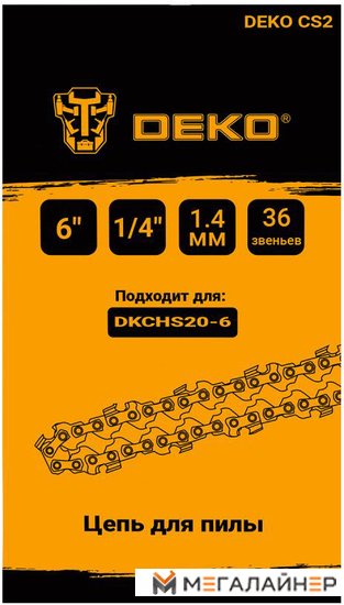 | Информация | Цепь для пилы DEKO СS2, 6", 1/4", 1.4 мм, 36 звеньев подходит для модели DKCHS 20-6. Поставляется в картонной упаковке. |