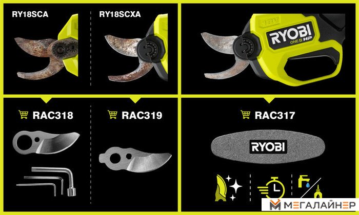 | Комплектация | Cменное лезвие для секатора RYOBI RY18SCA - 1 шт. Ключ для замены лезвия - 3 шт. Упаковка |