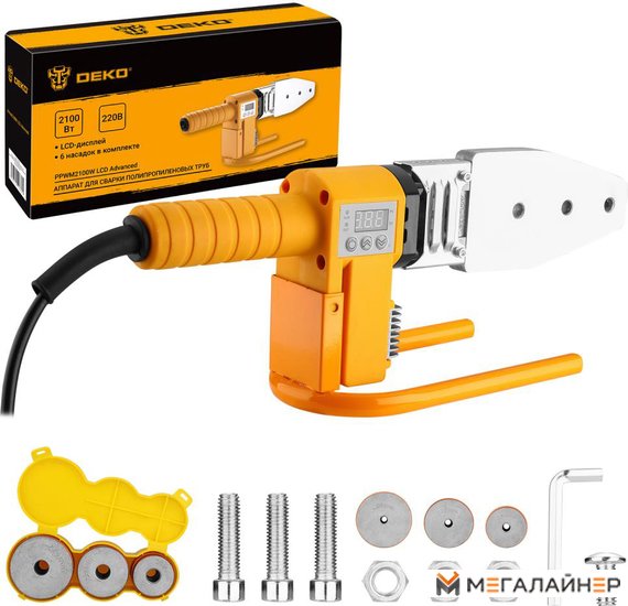 | Комплектация | - Аппарат для сварки - 1 шт. - Подставка - 1 шт. - Насадки - 6 шт (20, 25, 32,40,50,63 мм). - Винты - 4 шт. - Гайка - 3 шт. - Шестигранный ключ - 1 шт. - Руководство по эксплуатации - 1 шт. - Металлический кейс - 1 шт. |