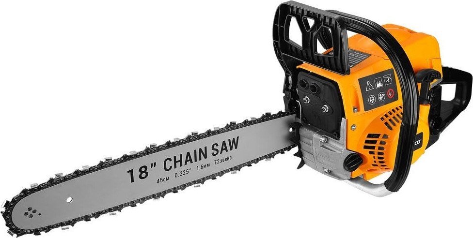 | Комплект поставки | - Основной корпус - 1 шт. - Шина - 1 шт. - Цепь - 1 шт. - Защитный щиток - 1 шт. - Зубчатый упор (гребенка) - 1 шт. - Емкость для топливной смеси - 1 шт. - Комбинированный ключ - 1 шт. - Шестигранный ключ - 1 шт. - Отвертка - 1 шт. - Винт - 2 шт. - Сумка - 1 шт. - Руководство по эксплуатации - Коробка |