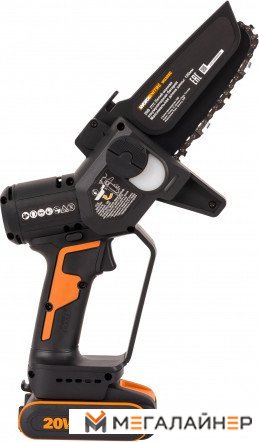 | Комплект поставки | - Пила аккумуляторная WORX WG325E - Аккумулятор WORX WA3639, 2 А*ч - Зарядное устройство WORX 20В 2А - Цепь - Шина - Защитный чехол для цепи |