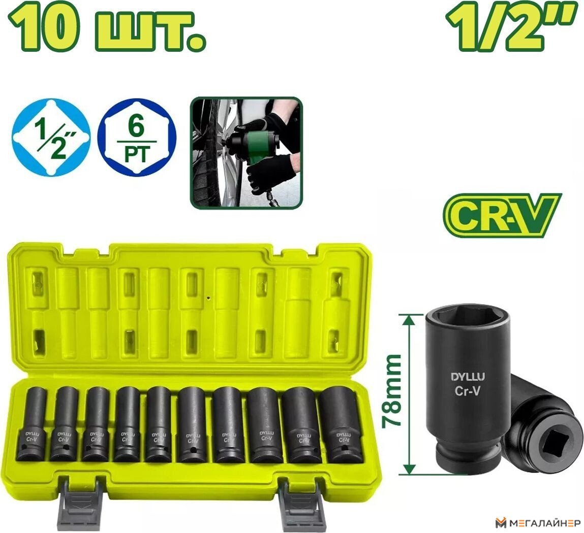 | Информация | Набор торцевых головок удлиненных ударных 1/2 " DYLLU DTMS2D02 (10 шт.) |