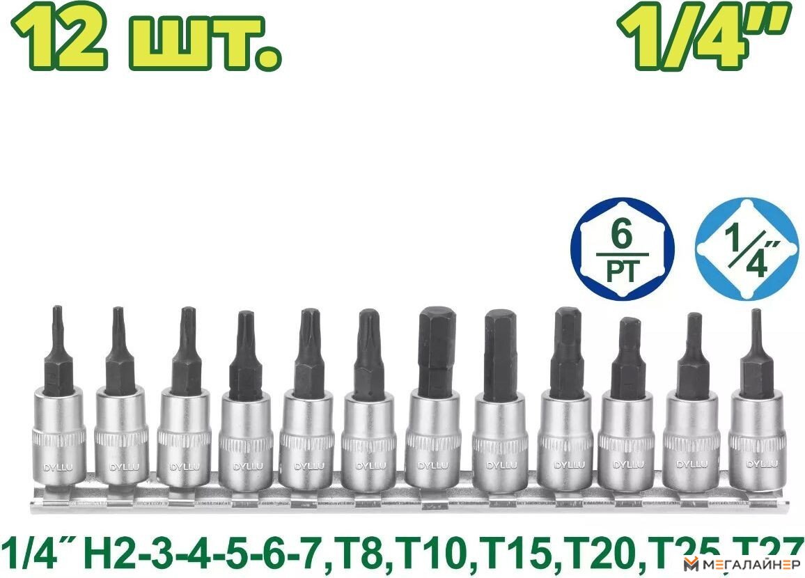 | Информация | Набор торцевых головок 1/4 " DYLLU DTST2414 (12 шт.) |