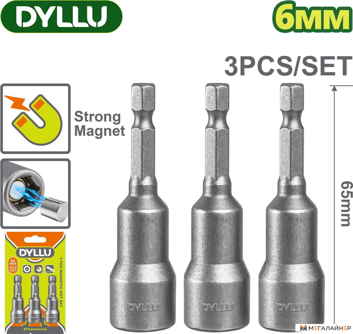 | Комплектация | - Торцевые магнитные насадки 6 мм - 3 шт. - Блистер |