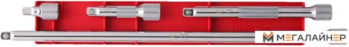 | Информация | - Набор удлинителей слесарных Milwaukee 4932480638 включает в себя удлинители размером 38 мм, 76 мм, 152 мм и 356 мм. - Идентификатор размера удлинителей имеет лазерную гравировку для удобства использования. - Хромированная отделка обеспечивает долгий срок службы и защиту от коррозии. |