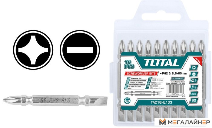 | Комплектация | Бита двухсторонняя PH2 + SL6,0 65 мм |