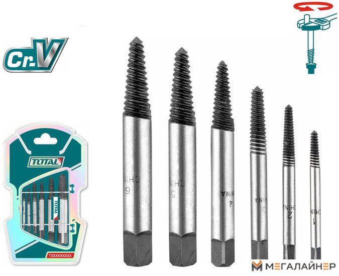 | Информация | Набор экстракторов Total TACSE0061 включает в себя 6 различных размеров: 3~6, 6~8, 8~11, 11~14, 14~18, 18~25 мм. Этот набор содержит 1 штук экстракторов различных размеров, что делает его универсальным и удобным в использовании. |