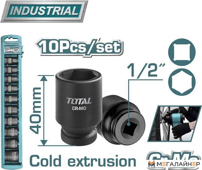 | Комплектация | - Торцевая головка ударная (10 мм, 12 мм, 13 мм, 14 мм, 15 мм, 17 мм, 19 мм, 21 мм, 22 мм, 24 мм) - 10 шт. - Пластиковый держатель для хранения - 1 шт. |