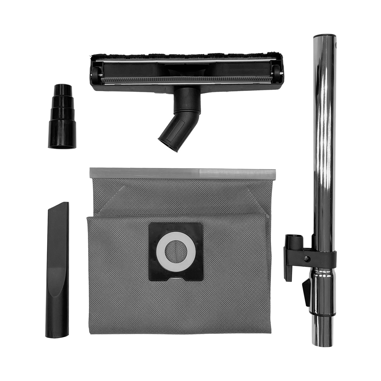 Строительный пылесос. Шланг. Насадка широкая. Насадка узкая. Телескопическая труба. Мешок многоразовый.