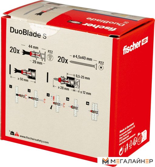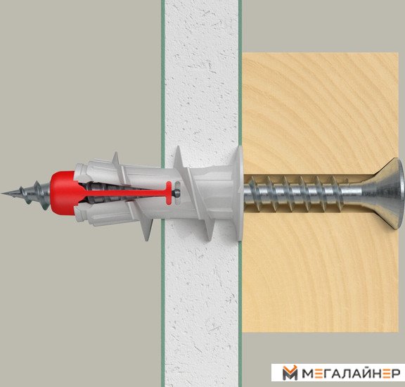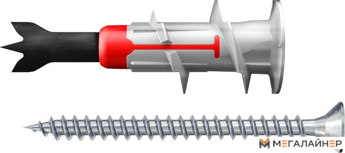 | Информация | ? Простой и быстрый монтаж самозасверливающегося дюбеля для гипсокартона. ? Центрирующий наконечник для точного позиционирования дюбеля. ? Антиротационные ребра предотвращают проворачивание дюбеля в отверстии. ? Шлиц PZ 2 - один и тот же шлиц для дюбеля и шурупа. ?? Оптимальная фиксация при применении подходящего шурупа для ДСП. |
