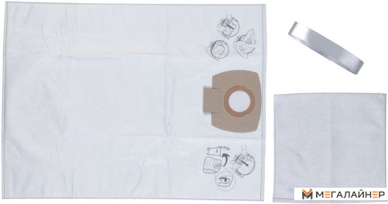 | Комплектация | Объем поставки - 4 флисовых фильтра; 1 флисовый фильтр для влажной уборки Объем мешка - 30 л |