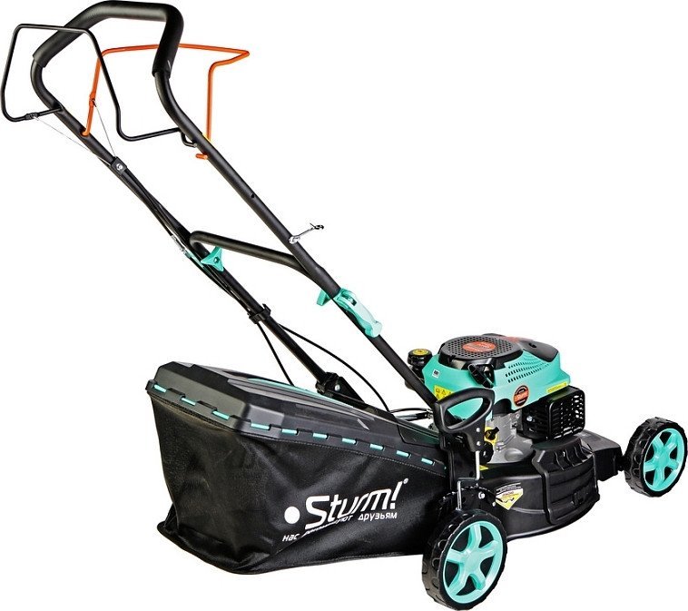 | Комплектация | - Газонокосилка - Рукоятки - Травосборник - Болт, шайба, (2 шт.) - Гайка, болт, шайба (4 шт.) - Торцевой ключ - Воронка - Заглушка для мульчирования - Зажим для троса - Дефлектор бокового выброса - Инструкция по эксплуатации - Инструкция по безопасности |
