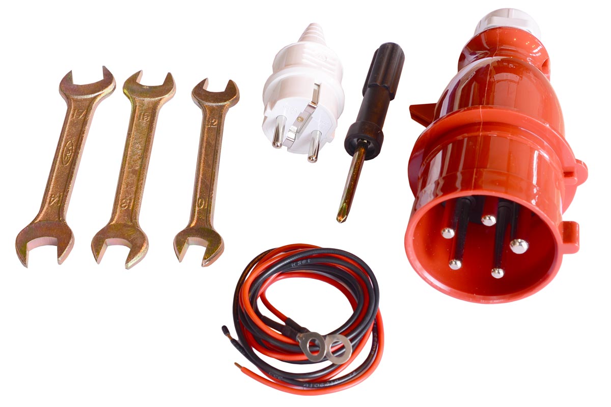 - Розетки: 220В – 16А 1 шт.(европейского стандарта) и 380В - 32А 1 шт.(промышленная), что позволяет подключать разные электроинструменты
