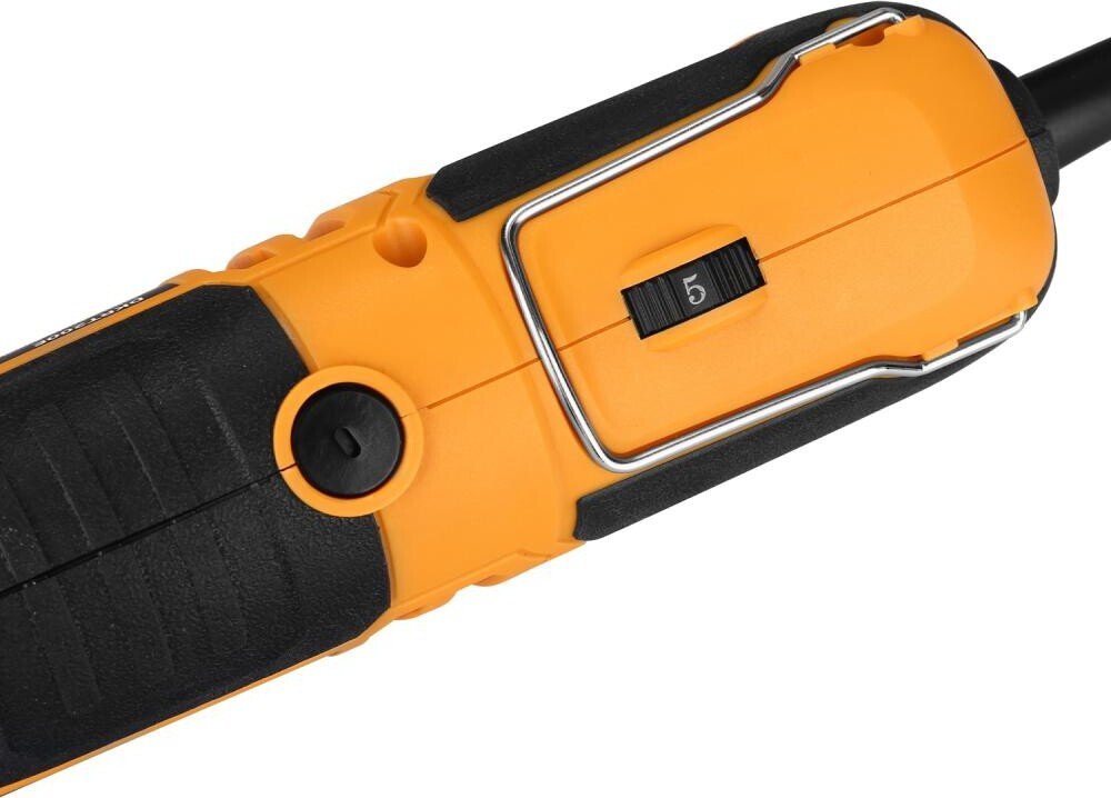 | Комплектация | Электрический гравер – 1 шт. Шлифовальные биты 3 мм – 10 шт. Держатель для шлифовальных цилиндров 3 мм – 1 шт. Круг шлифовальный – 6 шт. Круг отрезной – 8 шт . Шлифовальный цилиндр – 4 шт. Гаечный ключ – 1 шт . Полировочные диски – 2 шт. Стопорный штифт для гибкого вала – 1 шт. Хонинговальный камень – 1 шт. Сверло (2.2 мм, 3 мм) – 2 шт. Шарошка 3 мм – 2 шт. Цанга (2.3 мм, 3.2 мм) – 2 шт. Держатель для полировочных дисков 3 мм – 1 шт. Держатель для круга отрезного 3 мм – 1 шт. Гибкий вал – 1 шт. Телескопическая штанга – 1 шт. Крепежная струбцина – 1 шт. Дополнительная рукоятка – 1 шт. Скоба – 1 шт. Руководство по эксплуатации Коробка |