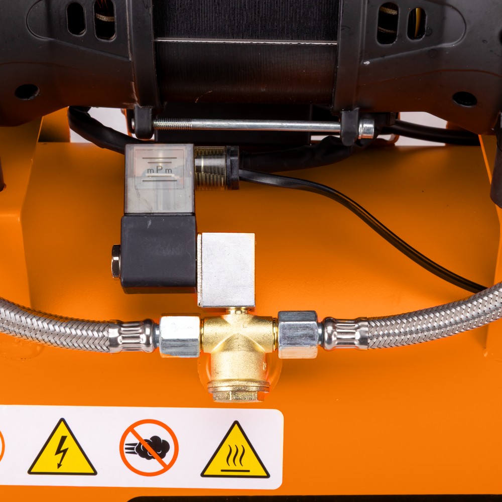 Данная модель компрессора оборудована двумя боковыми выходами на ресивере, что позволяет подключить дополнительные пневмоинструменты.