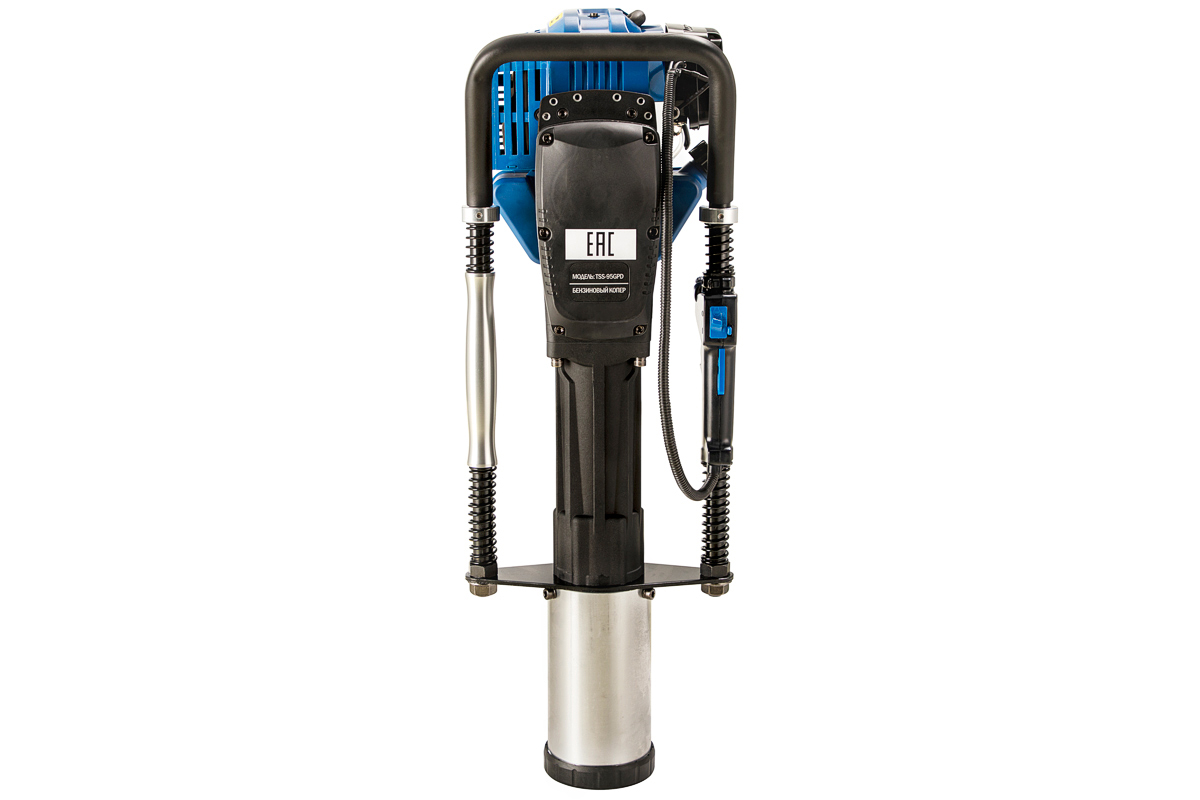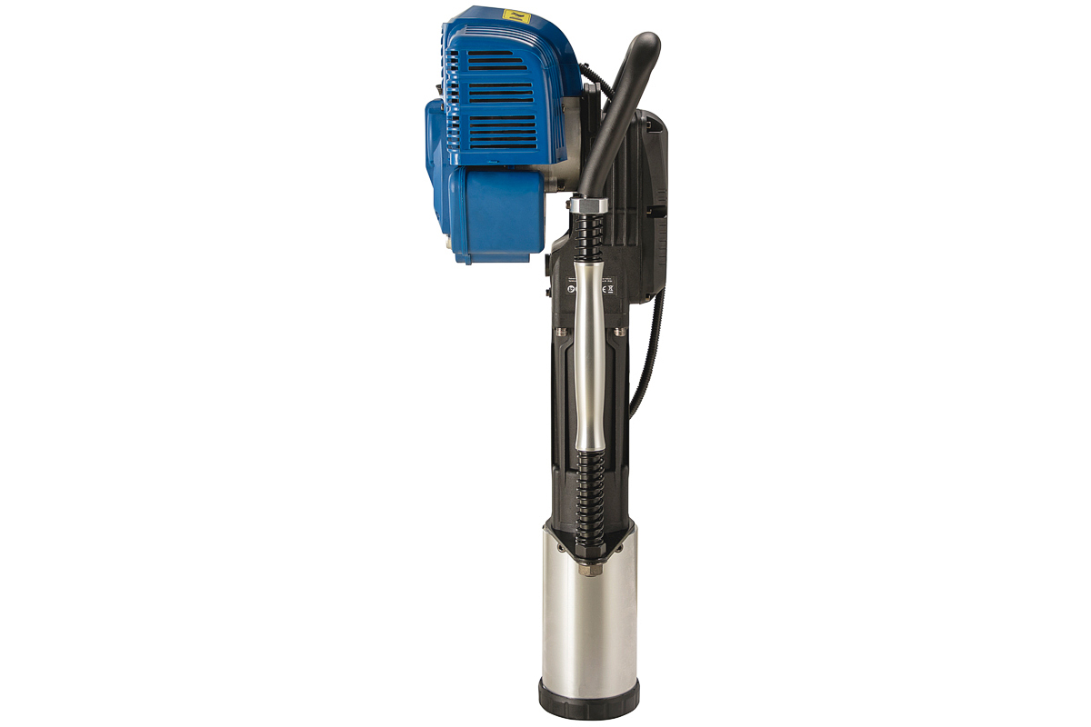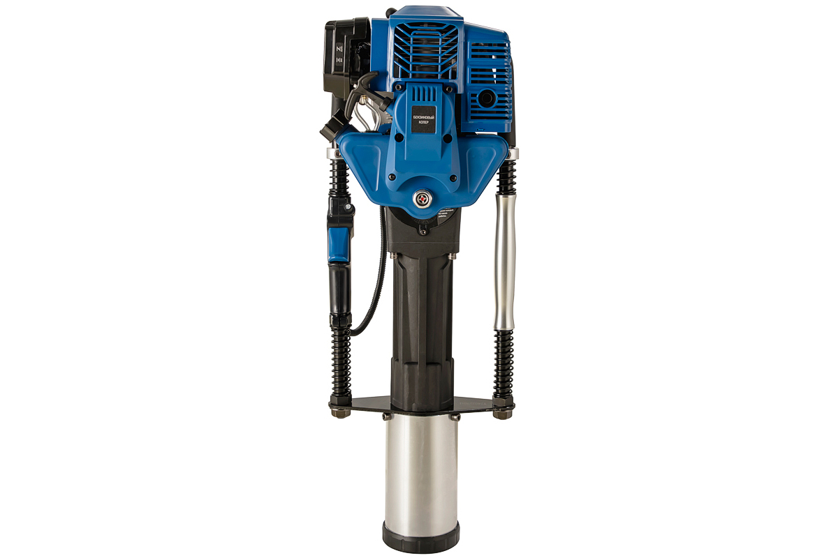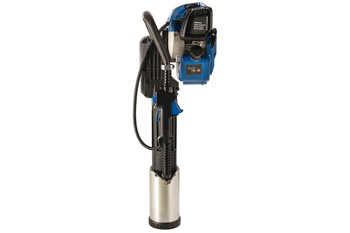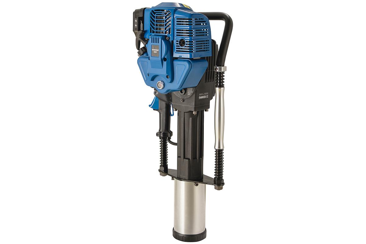 Копер с бензиновым двигателем для забивки столбов диаметром до 100 мм. Мощность двигателя инструмента — 1,7 кВт. Главным образом этот инструмент используется при строительстве ограждений. В отличии от электрического, он более мощный и не требует источника электропитания. По сравнению с пневматическими или гидравлическими, использование бензинового копера не требует дополнительной спецтехники.