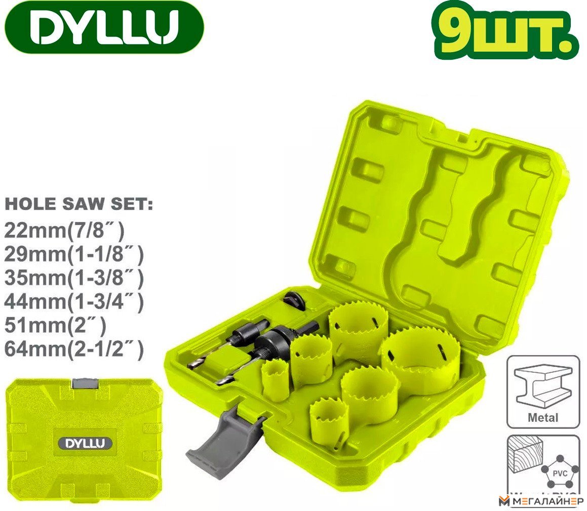 | Информация | - Биметаллическа коронка 22 мм (7/8'') - 1 шт. - Биметаллическа коронка 29 мм (1-1/8'') - 1 шт. - Биметаллическа коронка 35 мм (1-3/8'') - 1 шт. - Биметаллическа коронка 44 мм (1-3/4'') - 1 шт. - Биметаллическа коронка 51 мм (2'') - 1 шт. - Биметаллическа коронка 64 мм (2-1/2'') - 1 шт. - Оправка для коронок 9/16"~1-3/16" (хвостовик Hex 3/8") - 1 шт. - Оправка для коронок 1-1/4"~8-17/64" (хвостовик Hex 7/16") - 1 шт. - Оправка с резьбой 1/2-20 для коронок с резьбой 5/8-18 - 1 шт. - Кейс - Обратите внимание на качество и надежность каждого элемента в наборе! |