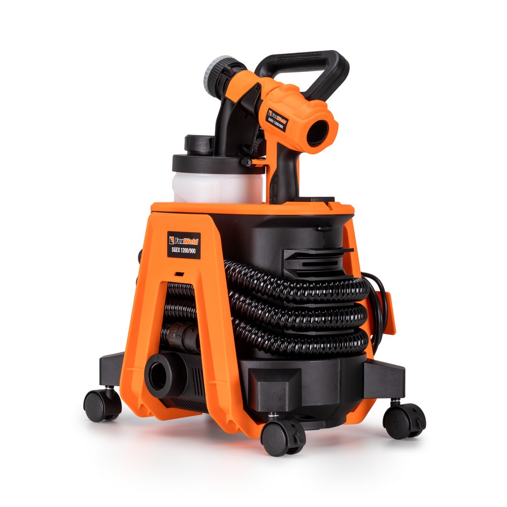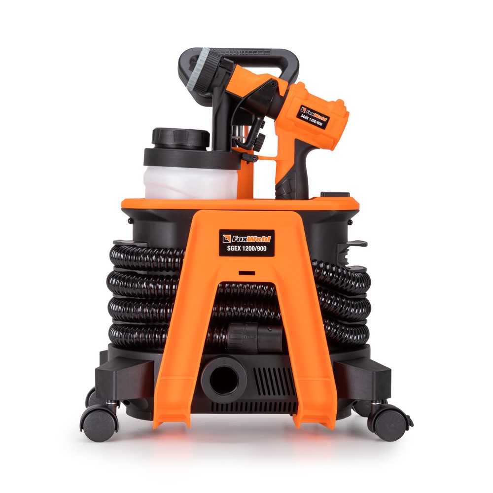 Краскопульт электрический SGEX 1200/900 предназначен для равномерного и быстрого нанесения лакокрасочных материалов на различные поверхности. Это удобный инструмент для широкого спектра покрасочных работ, обеспечивающий высокое качество покрытия и значительно экономящий время. Краскопульт также удобен для окрашивания больших площадей и для работ в труднодоступных местах и на рельефных поверхностях. Для создания потока большого объёма воздуха в изделие встроен компрессор. Вырабатываемый им воздух нагнетается в бачок и выдавливает ЛКМ через сопло. Краскопульты имеют широкое применение в профессиональной и бытовой областях: в строительстве и ремонте (покраска стен, потолков, полов, фасадов зданий, заборов, крыш); в автомобильной промышленности (покраска кузовов и других деталей, нанесение антикоррозийных составов); в других областях (покраска мебели, бытовой техники, окраска элементов интерьера, в сельском хозяйстве для обработки растений). Модель SGEX 1200/900 дополнительно оборудована телескопической ручкой и 4мя колёсами для перемещения.