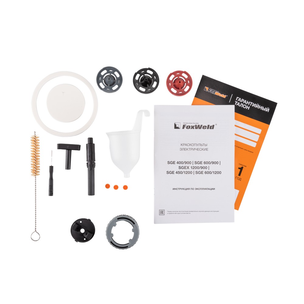 Для универсальности использования модель поставляется с комплектом из нескольких сопел и инструментами для чистки. Это позволяет избежать необходимости приобретения нескольких краскопультов для различных видов работ. Для измерения вязкости в комплекте поставляется измерительная воронка (вискозиметр).