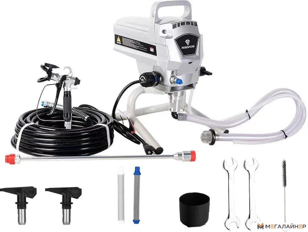| Комплект поставки | - Окрасочныйаппарат–1 шт - Окрасочныйпистолет–1 шт - Шланг для подачи краски под давлением – 1 шт - Гаечный ключ – 2 шт - Стакан для краски–1 шт - Удлинитель - 1 шт - Щетка – 1 шт - Дополнительное сопло 513 (0.013") - 1 шт - Фильтр 150 mesh для сопла 513 - 1 шт - Дополнительное сопло 523 (0.023") - 1 шт - Фильтр 60 mesh для сопла 523 - 1 шт - Руководствопоэксплуатации–1 шт |