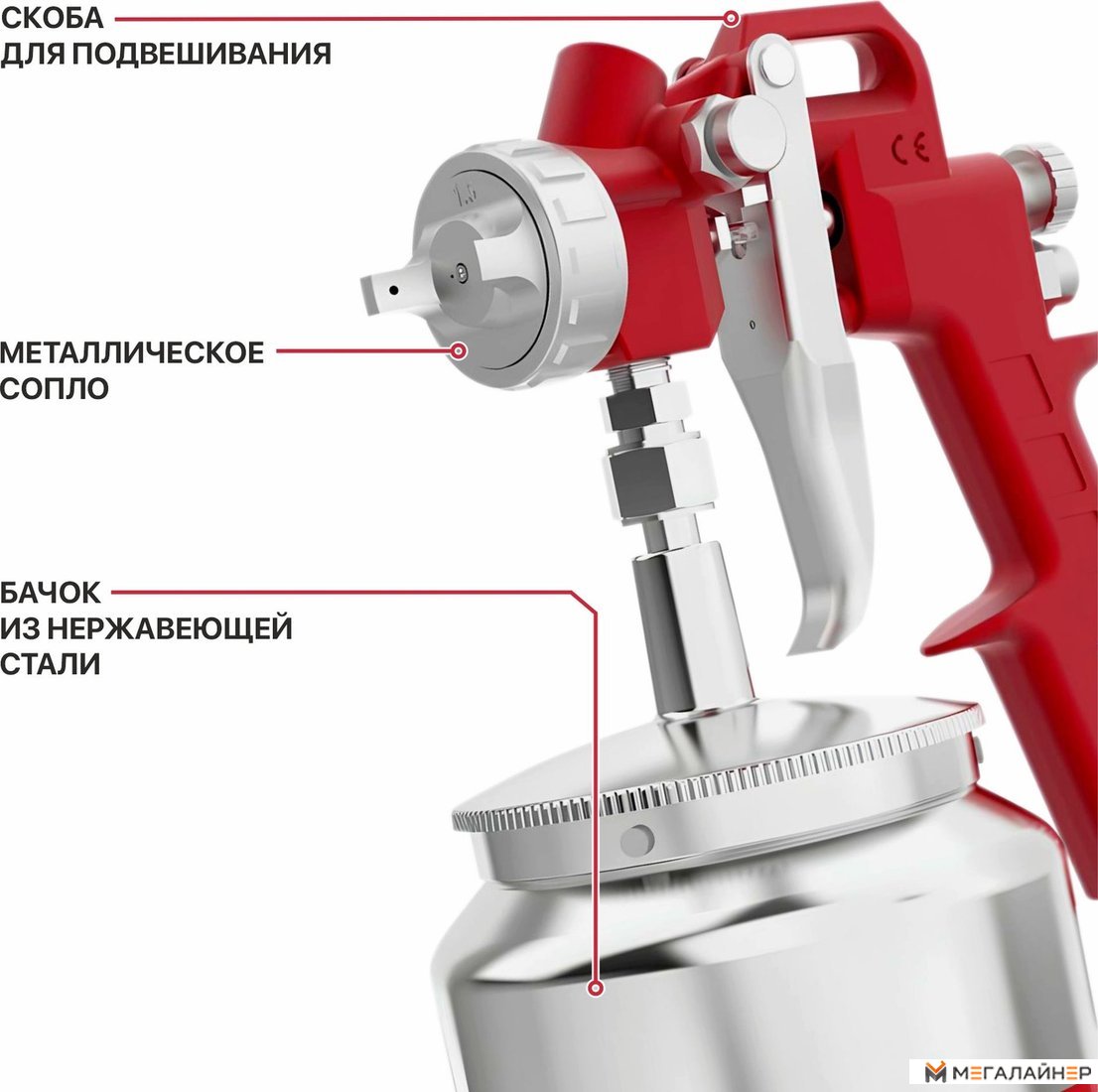 | Комплектация | - Краскопульт, - бачок, - коробка, - руководство по эксплуатации. |