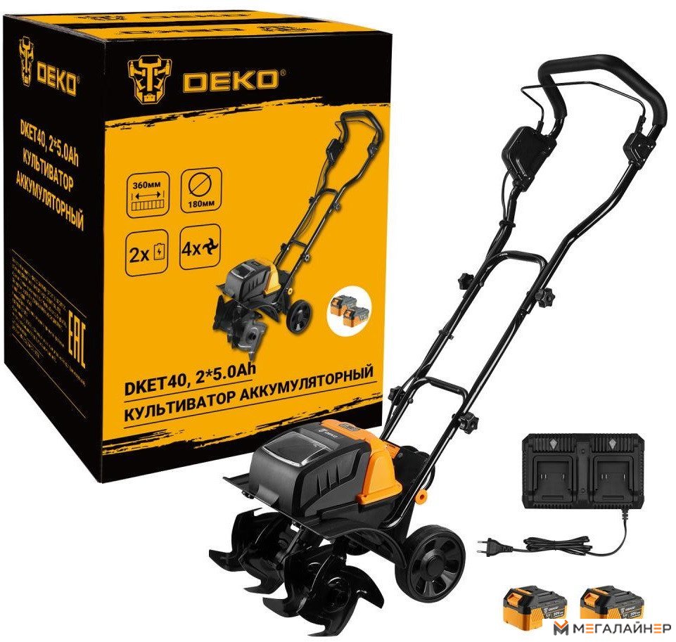 - Культиватор аккумуляторный - 1 шт.; - Зарядное устройство - 1 шт.; - Аккумулятор 5,0 Ач - 2 шт.; - Инструкция; - Коробка