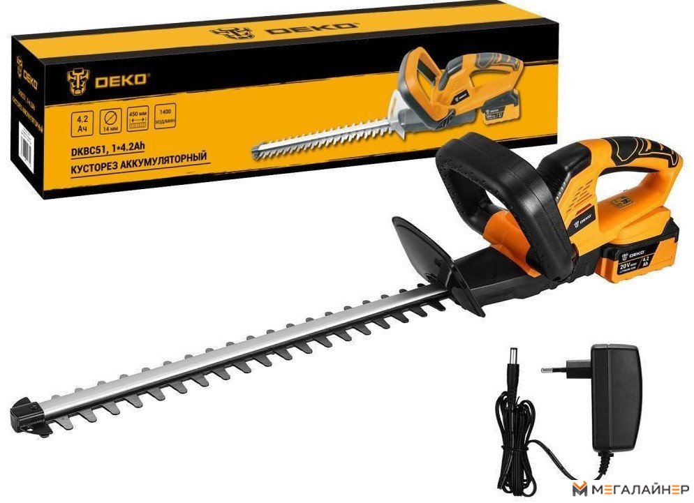 | Комплектация | - Кусторез - 1 шт - Защитный чехол - 1 шт - АКБ - 1 шт - Зарядное устройство - 1 шт - Руководство по эксплуатации - 1 шт |