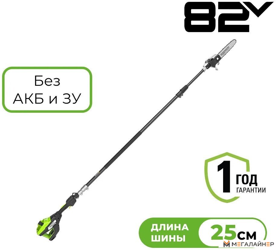 | Информация | Высоторез/Сучкорез аккумуляторный телескопический Greenworks PS102T, 25 см, бесщеточный, без АКБ и ЗУ (1402407) — из линейки Commercial позволяет комфортно подрезать ветви и сучья на высоте до 5 метров. Его ключевая особенность – 4-секционная телескопическая штанга, обеспечивающая максимальную рабочую длину 396 см. Оснащение включает пильную шину длиной 25 см. Инструмент отличается высокой надежностью и не требует обслуживания, связанного с заменой изнашиваемых щеток. Другие преимущества: экологичность эксплуатации, сниженный уровень шума и минимальная вибрация. Запуск устройства осуществляется простым нажатием кнопки. |