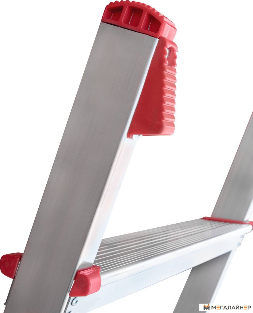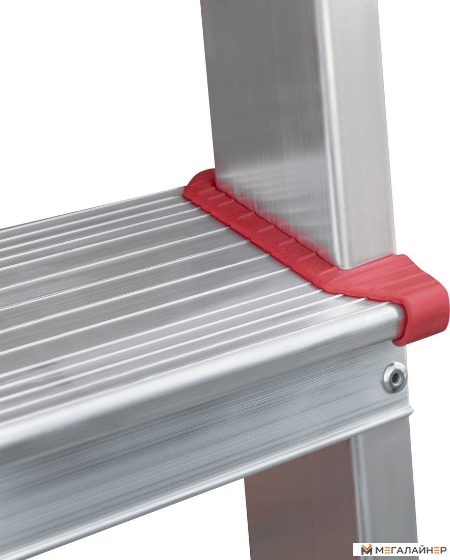 | Информация | - Широкие увеличенные ступени глубиной 80 мм обеспечивают комфорт и безопасность при использовании. - Стойки и ступени изготовлены из экструдированного алюминиевого профиля, что гарантирует прочность и устойчивость конструкции. - Многократная развальцовка в соединении ступеней со стойками обеспечивает высокую прочность и долговечность, что делает продукт надежным в эксплуатации. - Опорные наконечники выполнены из двухкомпонентного пластика, что способствует улучшению сцепления и долговечности. - Оборудована опорами на стену, что предотвращает повреждения контактной поверхности, повышает надежность опоры и обеспечивает правильную установку. - |