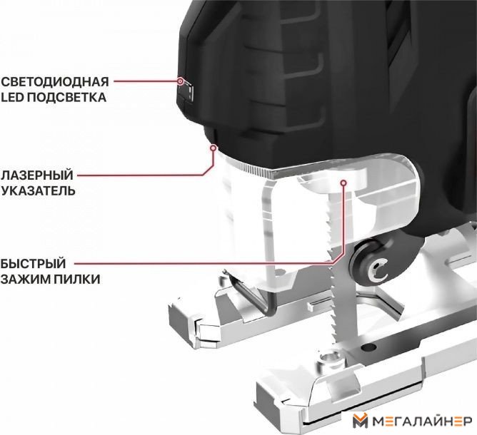 | Комплект поставки | - Лобзик, - коробка, - пильное полотно по дереву, - параллельный упор, - шестигранный ключ, - адаптер для подлючения пылесоса, - руководство по эксплуатации. |