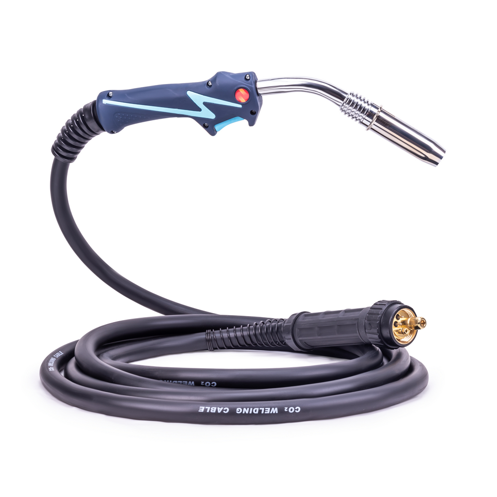 Эргономичная рукоятка горелки хорошо лежит в руке, а кнопка управления сваркой добавляет функциональности, удобства во время сварочного процесса и простоты обслуживания на месте проведения работ.
