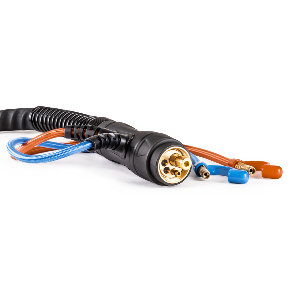 Уникальная конструкция позволяет использовать защитный газ для улучшения охлаждающего эффекта гусака горелки и расходников передней части.