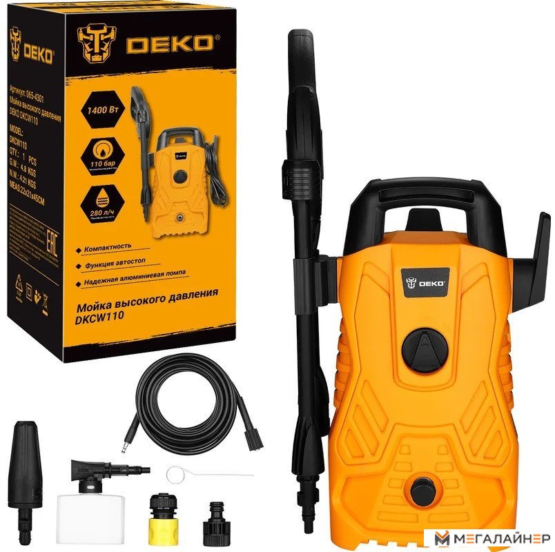 | Информация | - Мойка высокого давления DEKO DKCW110 идеально подходит для эффективной очистки автомобилей, лодок и мотоциклов. С ее помощью вы сможете легко справляться с загрязнениями на различных поверхностях, используя чистую воду под высоким давлением, а при необходимости — и моющие средства. - Компактные размеры и легкий вес делают эту мойку удобной для транспортировки и хранения, что особенно важно для домашних пользователей. Вы сможете без труда перемещать ее по участку или хранить в ограниченном пространстве. - Модель оснащена функцией Автостоп, что обеспечивает дополнительную безопасность и экономию энергии. Надежная алюминиевая помпа не только легкая, но и устойчива к коррозии, что гарантирует долговечность устройства. - Мойка может забирать воду из различных источников, таких как водопровод, садовая бочка или даже водоем, что делает ее универсальным инструментом для любых условий. - Рабочее давление составляет 70 бар, а максимальное давление достигает 110 бар, что обеспечивает отличные результаты при мытье. С максимальной подачей воды в 4.6 л/мин, вы сможете быстро и эффективно очищать любые поверхности. Класс защиты IPX5 гарантирует надежность и безопасность в эксплуатации. |