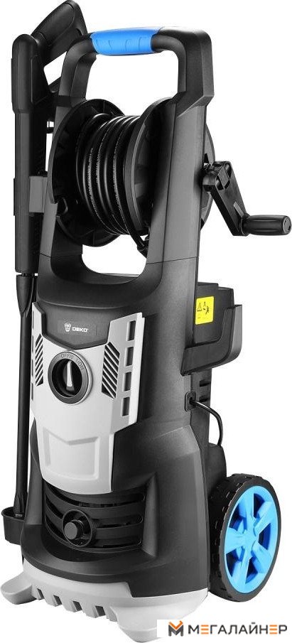 - Мойка - 1 шт.; - Ручка - 1 шт.; - Катушка для шланга - 1 шт.; - Ручка катушки - 1 шт.; - Колеса - 2 шт.; - Боковые держатели катушки - 2 шт.; - Держатель шнура питания - 1 шт.; - Держатель емкости для моющего средства - 1 шт.