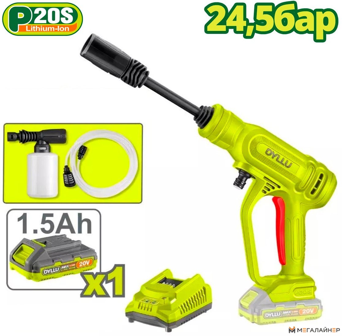 - Мойка высокого давления - 1 шт.; - Аккумулятор DTLBP515 1,5 Ач - 1 шт.; - Зарядное устройство DTFCP518 - 1 шт.; - 2-x режимный распылитель - 1 шт.; - Шланг для подачи воды 3 м - 1 шт.; - Пеногенератор 300 мл - шт.; - Коробка.