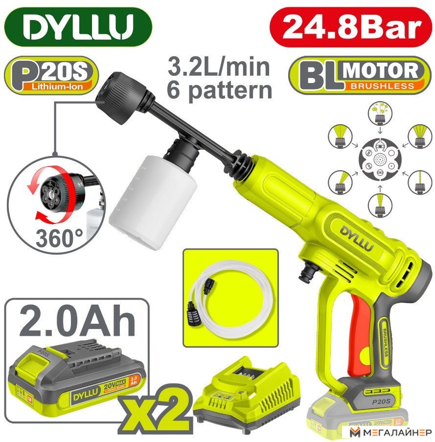 - Мойка высокого давления - 1 шт.; - Аккумулятор DTLBP520 2.0 А·ч - 2 шт.; - Зарядное устройство DTFCP518 - 1 шт.; - 6-и режимный распылитель - 1 шт.; - Шланг для подачи воды 3 м - 1 шт.; - Пеногенератор 300 мл - 1 шт.; - Коробка