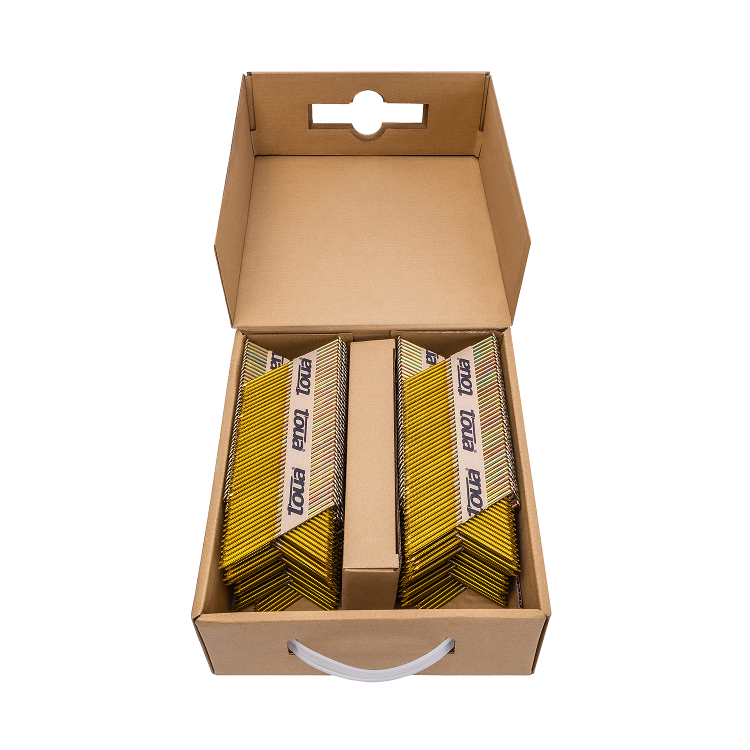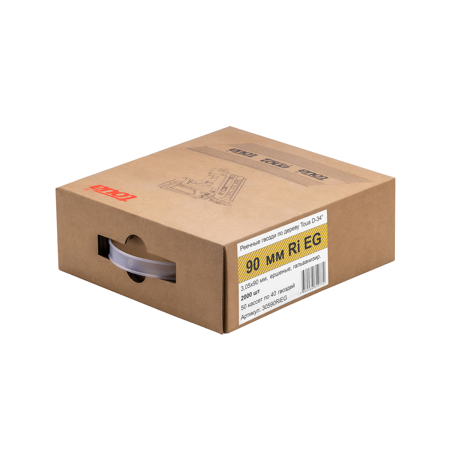 - 6000 (3 упаковки по 2000 шт.) ершеных гвоздей Toua D34 длиной 90 мм с гальванизацией 5 мкм, что позволяет применять их для наружных работ в условиях повышенной влажности без прямого контакта с водой. Реечные гвозди широко используются как в деревянном строительстве для сборки стропильных систем и деревянных каркасов, так и для обрешетки грузов на упаковочных работах. Наклон магазина позволяет подлезать инструментом в узкие места и между балками. Особенностью реечных гвоздей Toua является точное соблюдение шага между гвоздями в кассете, что позволяет поршню при забивании гвоздя не задевать шляпку соседнего гвоздя и продлевает срок жизни поршня на реечном нейлере с углом наклона магазина 30-34 градуса.