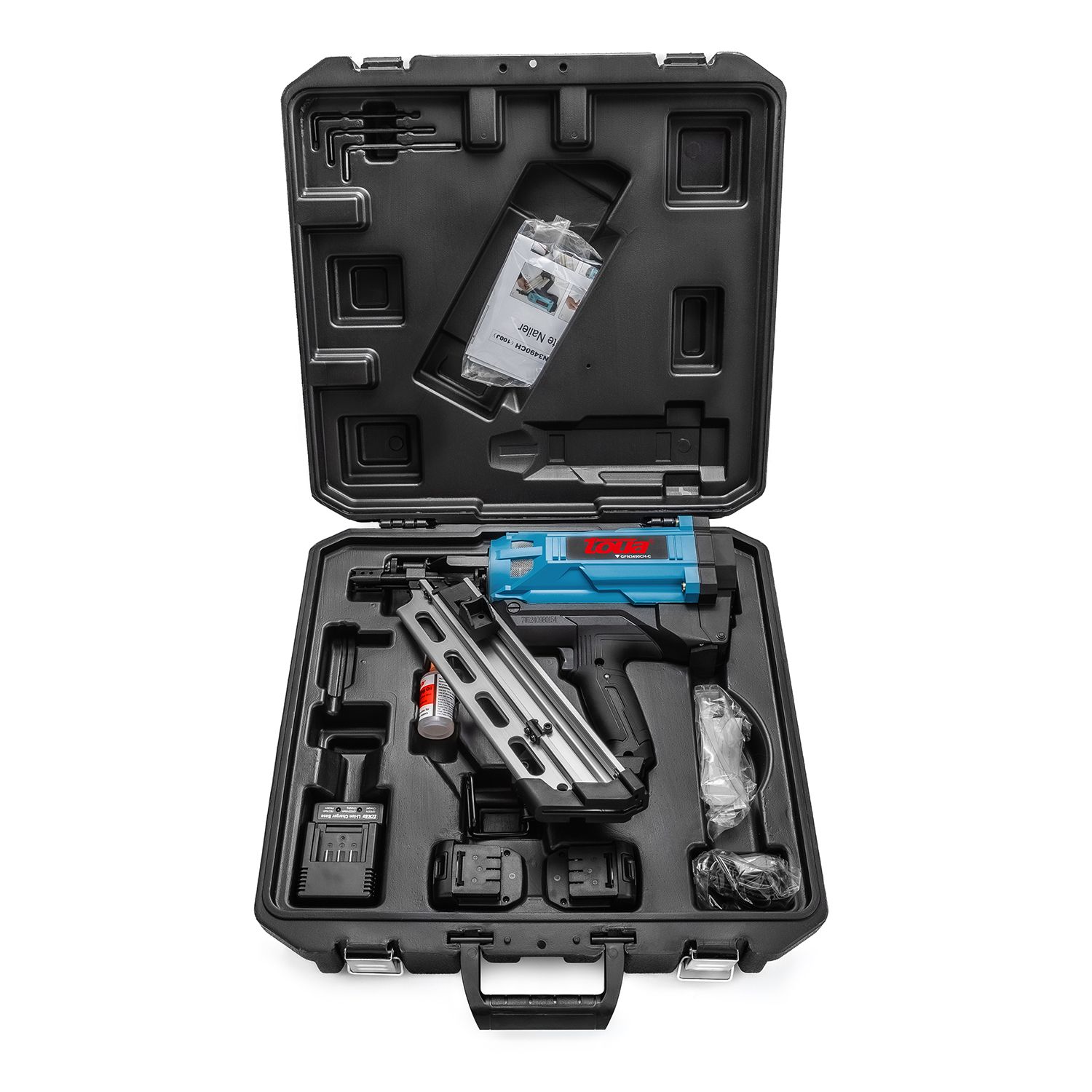 Газовый нейлер (гвоздезабивной пистолет) для каркасных работ предназначен для автономной работы с гвоздями на бумажной кассете длиной от 50 мм до 90 мм. Для данной модели гвоздезабивателя не требуется компрессор или подключение к электросети.