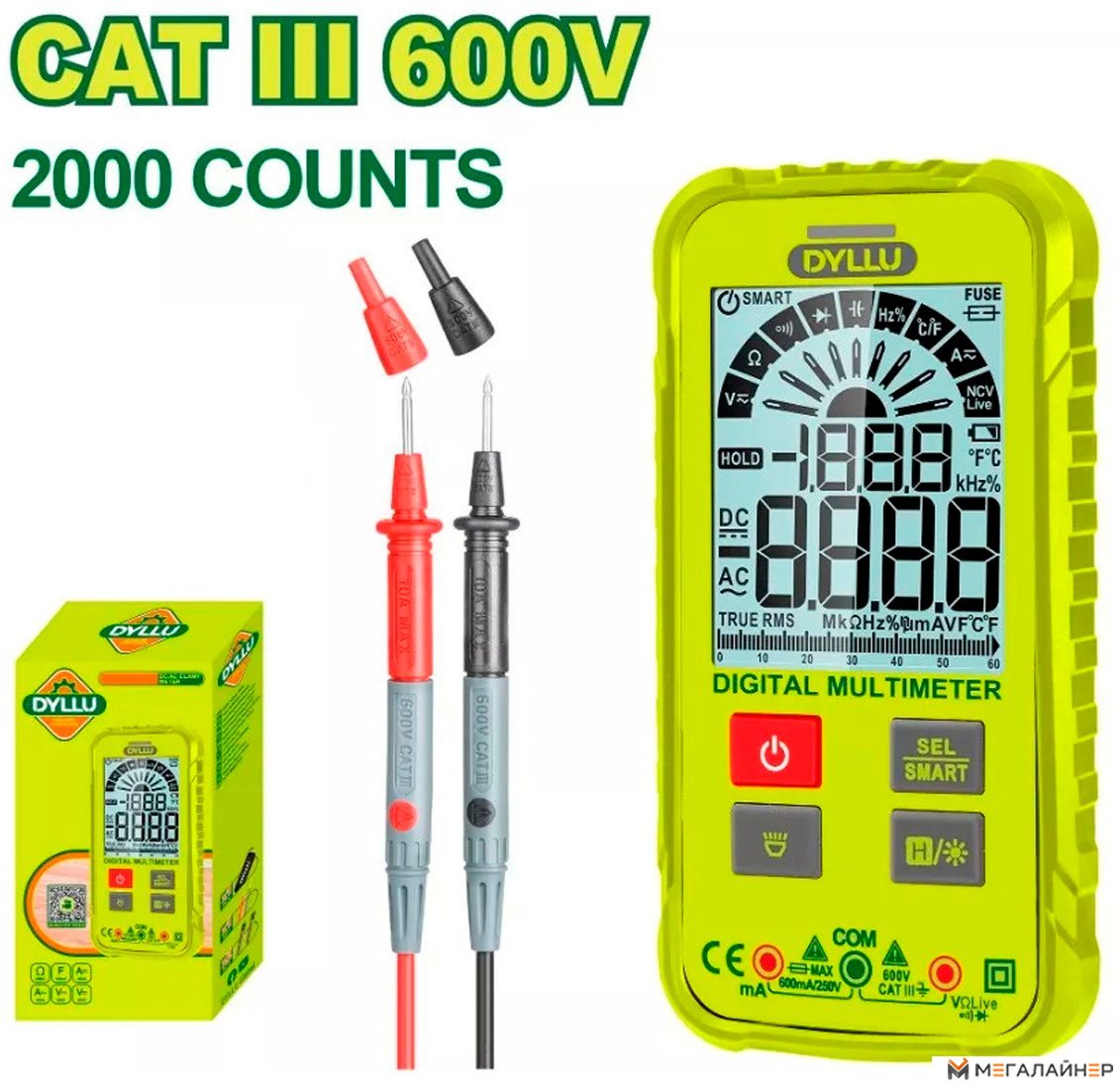 | Измерение | емкость, переменное напряжение, переменный ток, постоянное напряжение, постоянный ток, сопротивление |