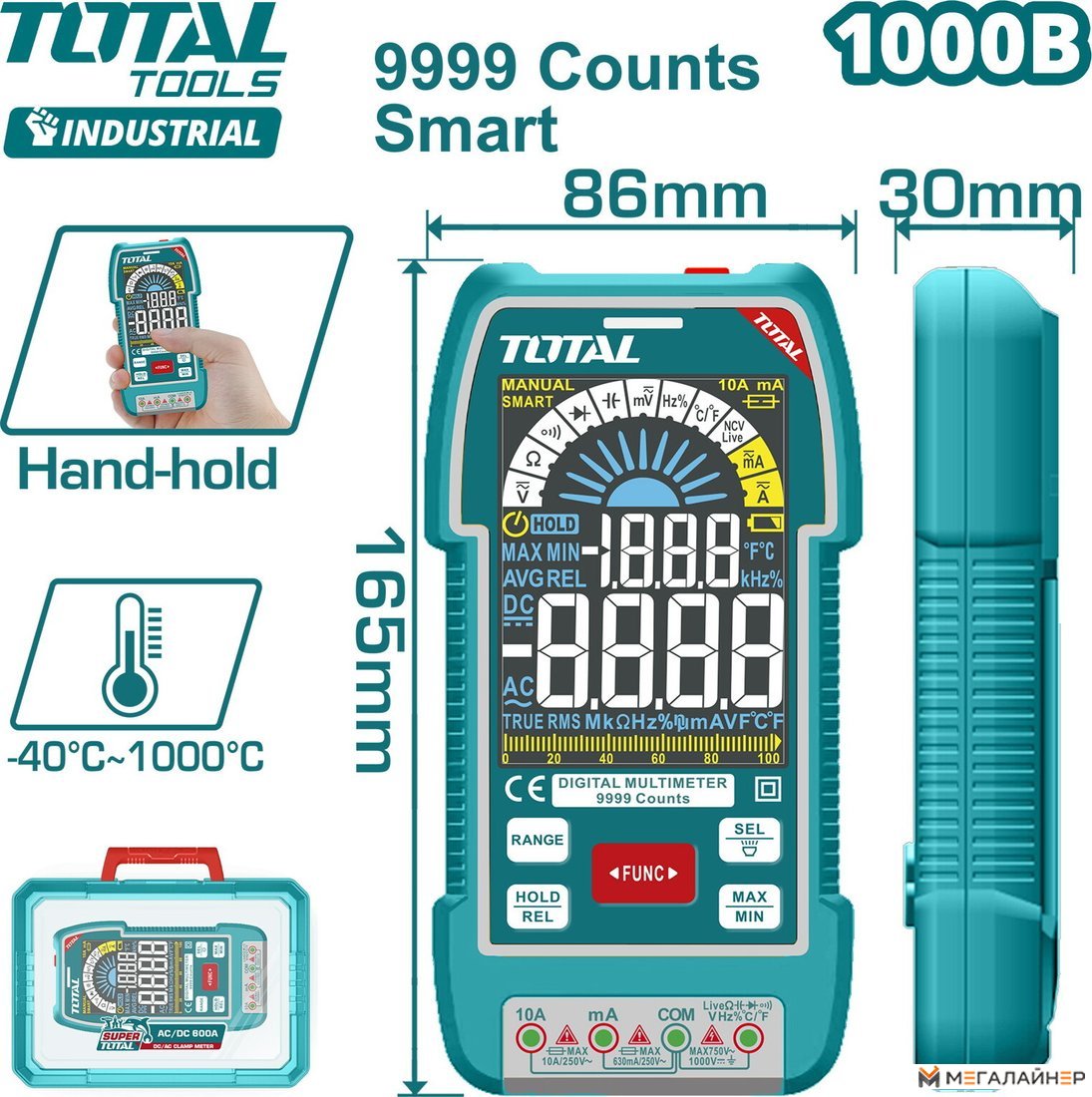 | Измерение | емкость, переменное напряжение, переменный ток, постоянное напряжение, постоянный ток, сопротивление, частота |
