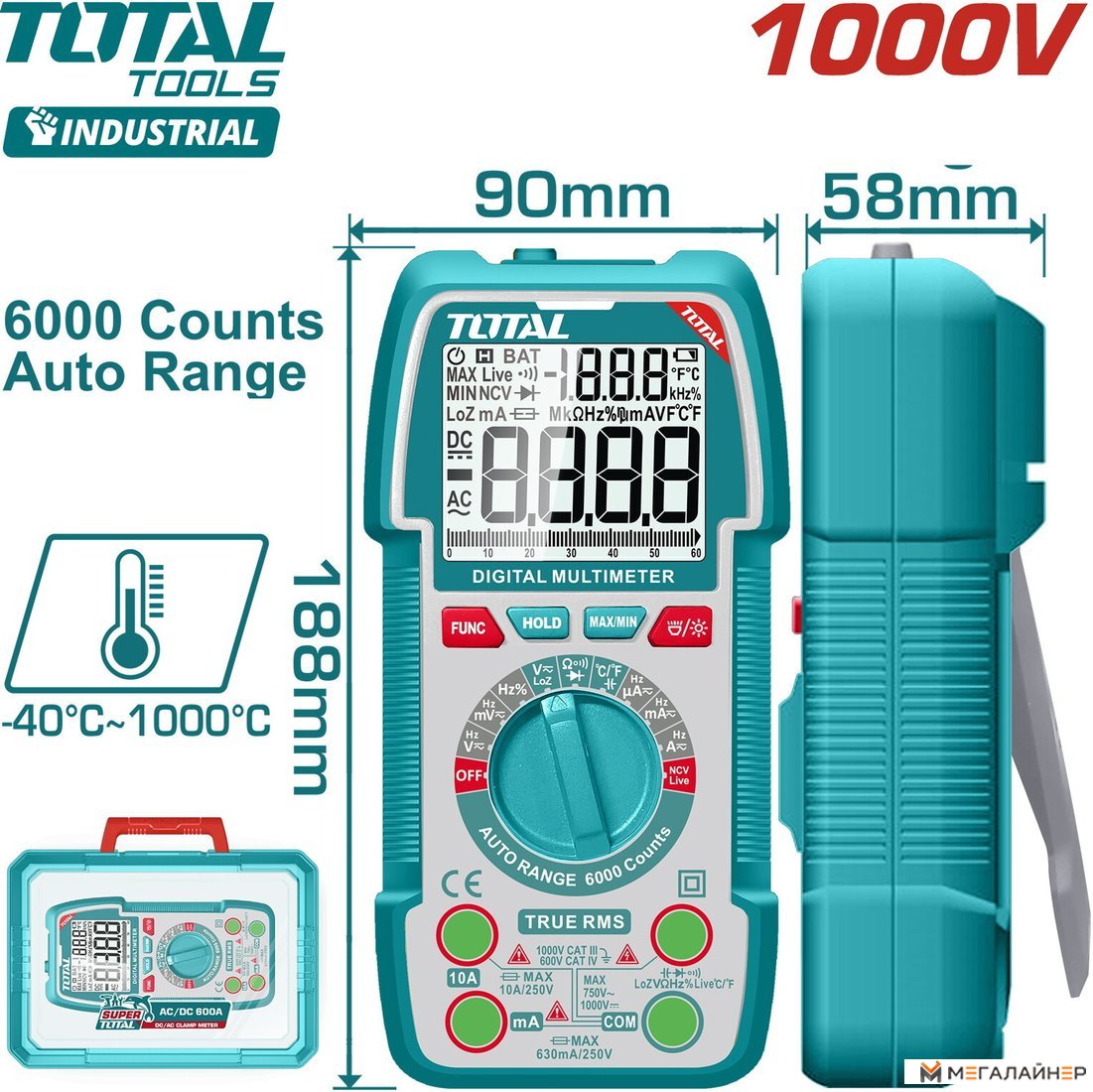 | Информация | -TOTAL TMT5310004 — это современный цифровой мультиметр, предназначенный для профессионального и бытового применения. Прибор оснащен большим ЖК-дисплеем с поддержкой TRMS и 6000 отсчётов, что обеспечивает высокую точность измерений в различных условиях. Благодаря широкому функционалу устройство позволяет измерять постоянное и переменное напряжение, ток, сопротивление, емкость, частоту, температуру и другие параметры. -Мультиметр поддерживает автодиапазон, что облегчает работу с разными типами измеряемых величин. Встроенные функции включают бесконтактное определение напряжения, проверку диодов, прозвонку цепей, фиксацию данных (Data Hold), а также автоматическое оповещение о высоком напряжении. Для удобства работы в условиях плохой освещённости предусмотрены подсветка дисплея и встроенный фонарик. -В комплект поставки входят сам мультиметр, три батарейки AAA, а также кейс для хранения и транспортировки. Прибор отличается компактными размерами и малым весом, что делает его удобным для повседневного использования и переноски. Производитель — компания TOTAL TOOLS CO. PTE. LTD (Китай), гарантия на устройство составляет 12 месяцев. -TOTAL TMT5310004 станет отличным выбором для специалистов и любителей, которым необходим надёжный и многофункциональный инструмент для работы с электрическими цепями. Модель отличается прочной конструкцией, простым управлением и расширенными возможностями для диагностики и обслуживания электрооборудования. |