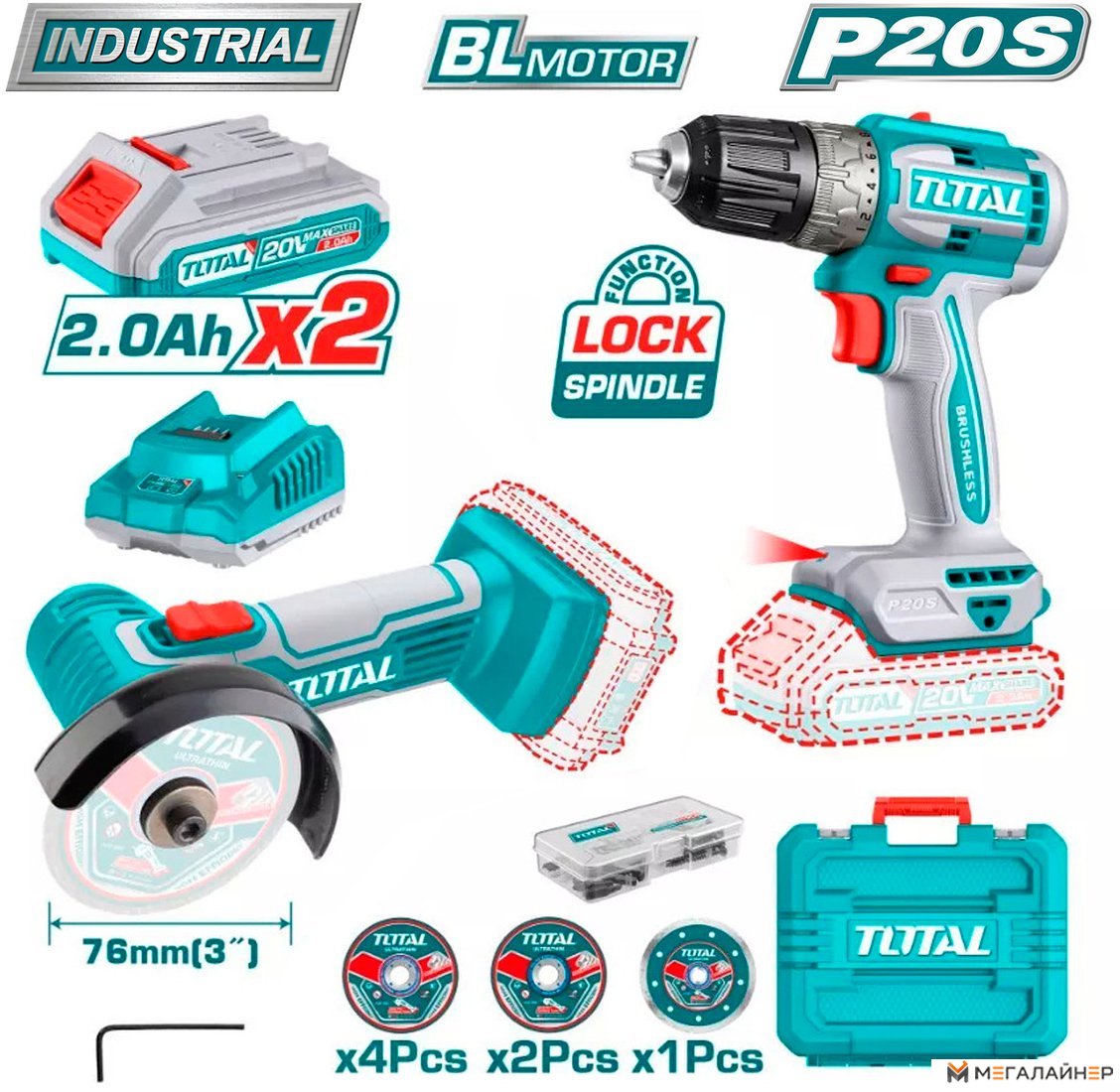 | Комплектация | Дрель-шуруповерт TOTAL TDLI20453 - 1 шт. Мини-пила TOTAL TCKLI20278 - 1 шт. Аккумулятор 2,0 А*ч - 2 шт. Быстрое зарядное устройство - 1 шт. Диск отрезной для пилы 76 мм - 4 шт. Диск шлифовальный для пилы 76 мм - 2 шт. Диск алмазный для пилы 76 мм - 1 шт. Набор набор аксессуаров 47 шт. Инструкция Кейс |