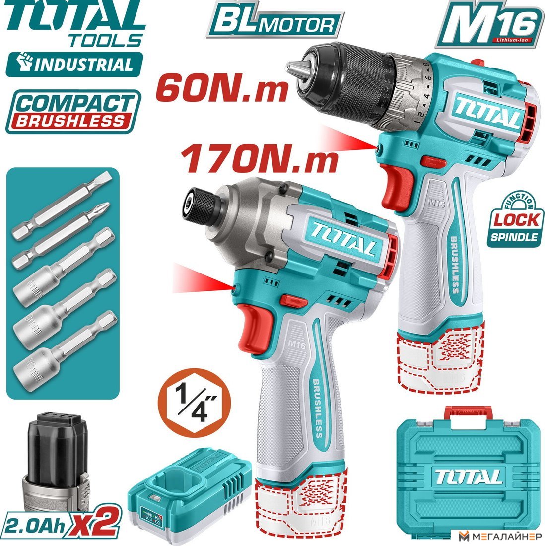 | Комплектация | Дрель-шуруповерт TDLI16681 - 1 шт. Винтоверт TOTAL TIRLI16171 - 1 шт. Аккумулятор TFBLI1620 2,0 А*ч - 2 шт. Зарядное устройство TFCLI1613 - 1 шт. Торцевые насадки (6, 8, 10 мм) - 3 шт. Двухсторонняя бита Cr-V 65 мм - 2 шт. Инструкция Кейс |