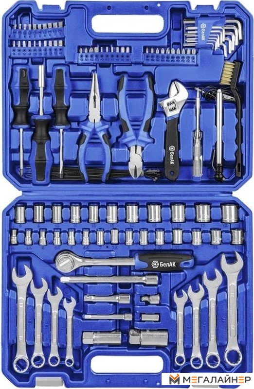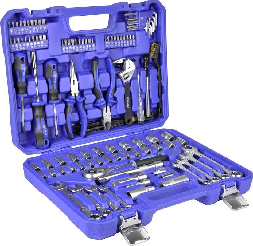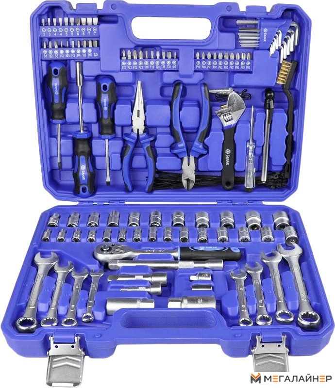 | Комплектация | - 1/4" Головки торцевые: 4, 4.5, 5, 5.5, 6, 6.5, 7, 7.5, 8, 9, 10, 11, 12, 13, 14 мм - 1/4" Адаптер - 1/4" Удлинитель - 3/8" Головки торцевые: 8, 9, 10, 11, 12, 13, 14, 15, 16, 17, 19 мм - 3/8" Головки торцевые свечные: 16, 21 мм - 3/8" Ключ трещоточный - 3/8" Удлинитель 2 шт. - 3/8" Адаптер - Биты 25 мм: SL3х2, SL4x2, SL5x2, SL6x2, SL7x2, PН0x2, РН1x2, РН2x4, РНЗx2, РZО, РZ1, РZ2, РZ3, Т10, Т15, Т20, Т25, Т30, S0, S1, S2, S3, АD, Н2, Н2.5, НЗ, Н4, H5, Н6 - Комплект шестигранных ключей: 1.27, 1.5, 2, 2.5, 3, 3.5, 4, 4.5, 5, 5.5, 6 мм - Комплект комбинированных ключей: 8, 10, 11, 12, 13, 14, 15, 17 мм - Индикаторная отвертка: 12-220 В - Отвертка битодержатель 150 мм - Отвертки: SL5x75 мм, РН1х75 мм - Хомуты 20 шт.: 200 мм - Щетка металлическая - Индикатор давления - Разводной ключ: 150 мм - Бокорезы 150 мм - Длинногубцы 150 мм - Кейс для хранения |