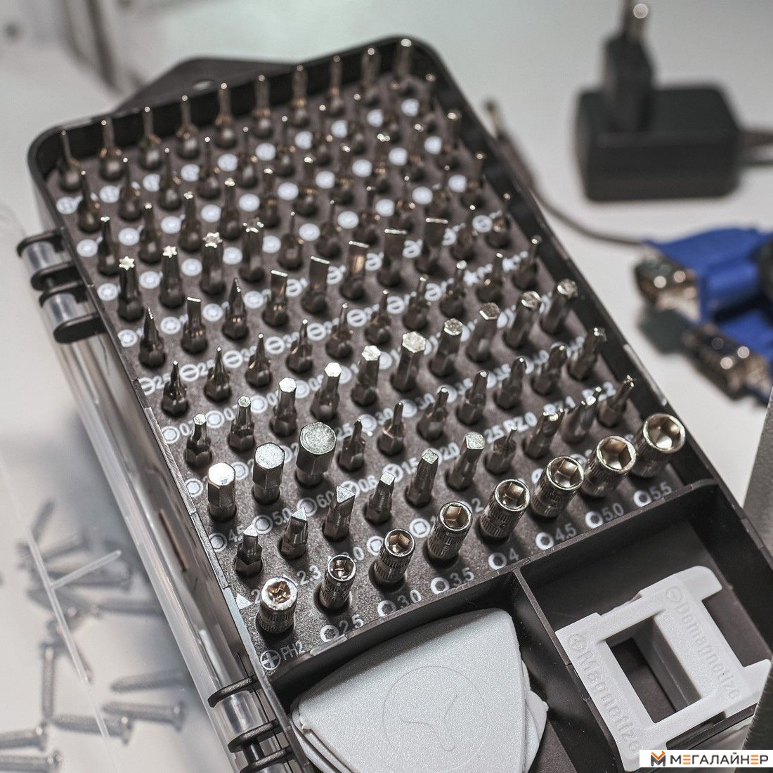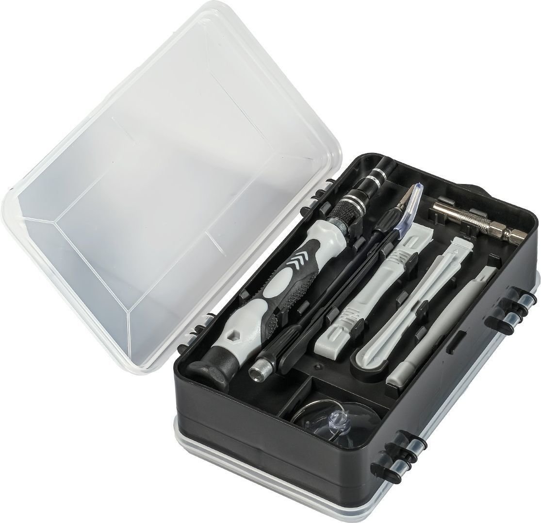 | Информация | Набор для ремонта смартфонов и ноутбуков отлично подойдет для ремонтных мастерских, а так же для многочисленных бытовых задач. В комплекте есть все необходимые насадки и переходники, магнитная отвертка с удобной прорезиненной ручкой , гибкий адаптер, ключ SIM и все необходимые биты и головки, все в удобном кейсе и всегда под рукой. может быть отличным подарком для мастеров данной сферы. |