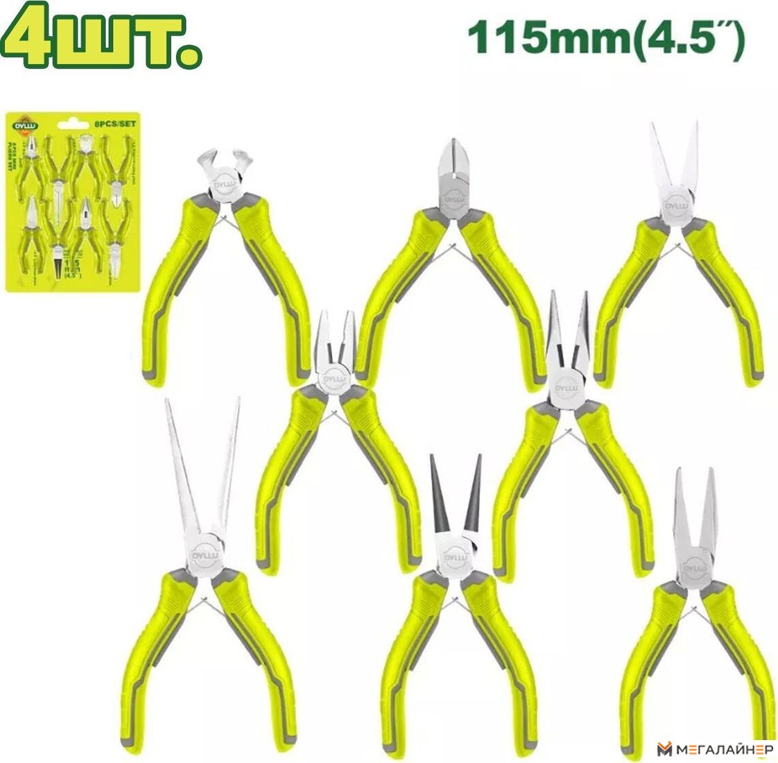 | Комплектация | Кусачки торцевые 115 мм - 1 шт. Бокорезы 115 мм - 1 шт. Плоскогубцы 115 мм - 1 шт. Комбинированные плоскогубцы 115 мм - 1 шт. Длинногубцы 115 мм - 1 шт. Плоскогубцы с изогнутыми губками 115 мм - 1 шт. Круглогубцы 115 мм - 1 шт. Острогубцы 115 мм - 1 шт. |