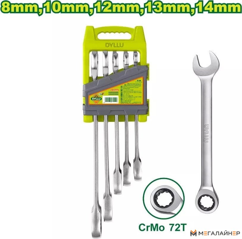 | Комплектация | Набор гаечных ключей с трещоткой 8-14мм - 5шт. (8мм, 10мм, 12мм, 13мм, 14мм); Пластиковый подвес для хранения - 1 шт. |