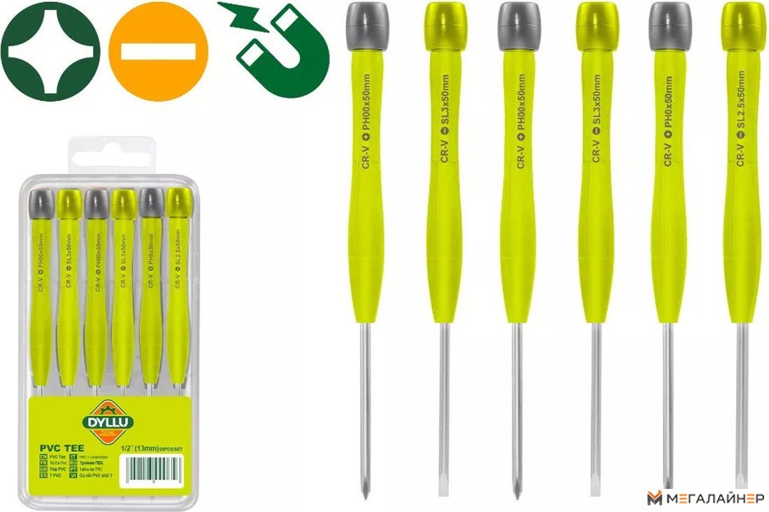 | Информация | - Набор прецизионных отверток DYLLU DTSS2B06 идеально подходит для точных работ. - Длина набора составляет 130 мм, а длина рабочей части - 50 мм. - Этот набор отлично подойдет для выполнения различных точных работ. |